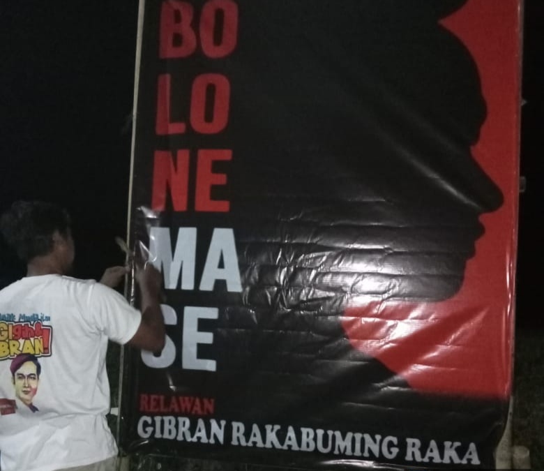 Spanduk tersebut bertuliskan ‘Bolone Mase, Relawan Gibran Rakabuming Raka’.