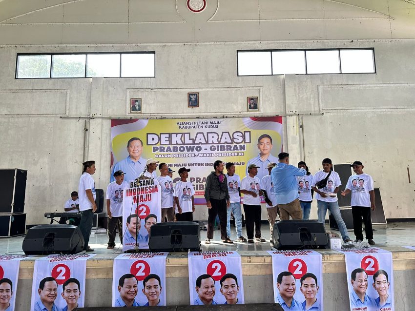 KUDUS – Ribuan Petani yang tergabung dalam Aliansi Petani se-Kabupaten Kudus mendeklarasikan dukungan kepada pasangan Calon Presiden dan Calon Wakil Presiden, Prabowo Subianto-Gibran Rakabuming Raka dalam Pilpres 2024.