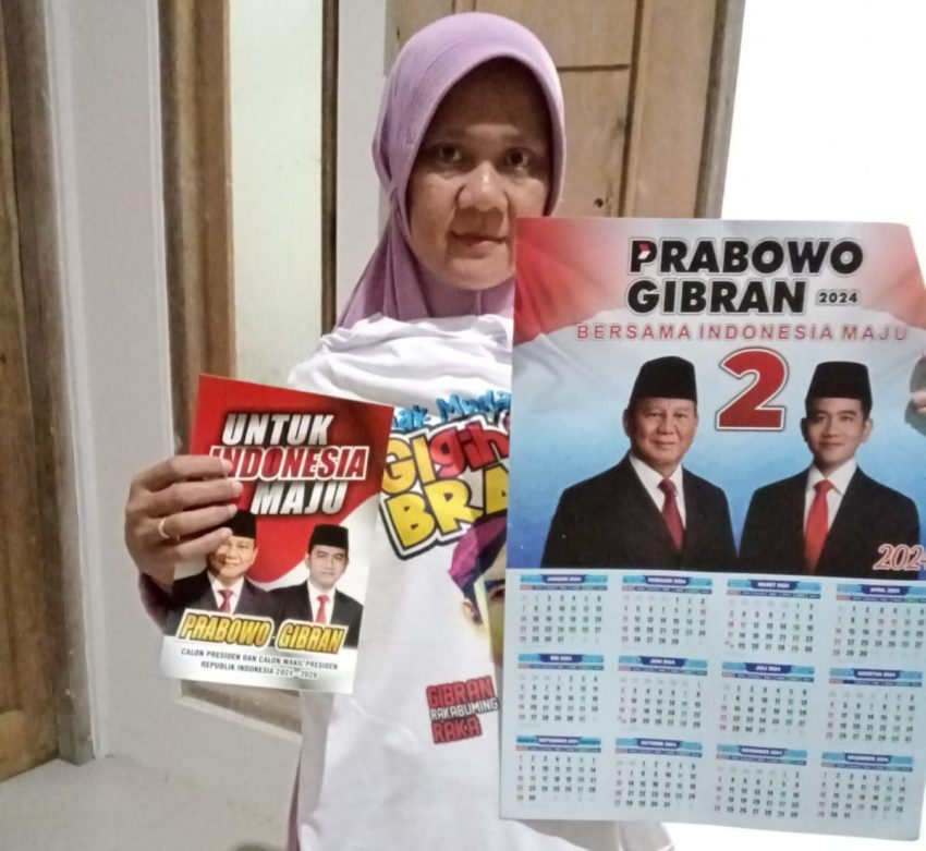 “Kami membagikan kaos dan kalender di pasar, dan ke rumah warga. Dengan gerakan door to door yang kita jalankan kami yakin pasangan Prabowo-Gibran akan menang dalam Pilpres,” kata Khanafi, Sabtu, 30 Desember 2023.