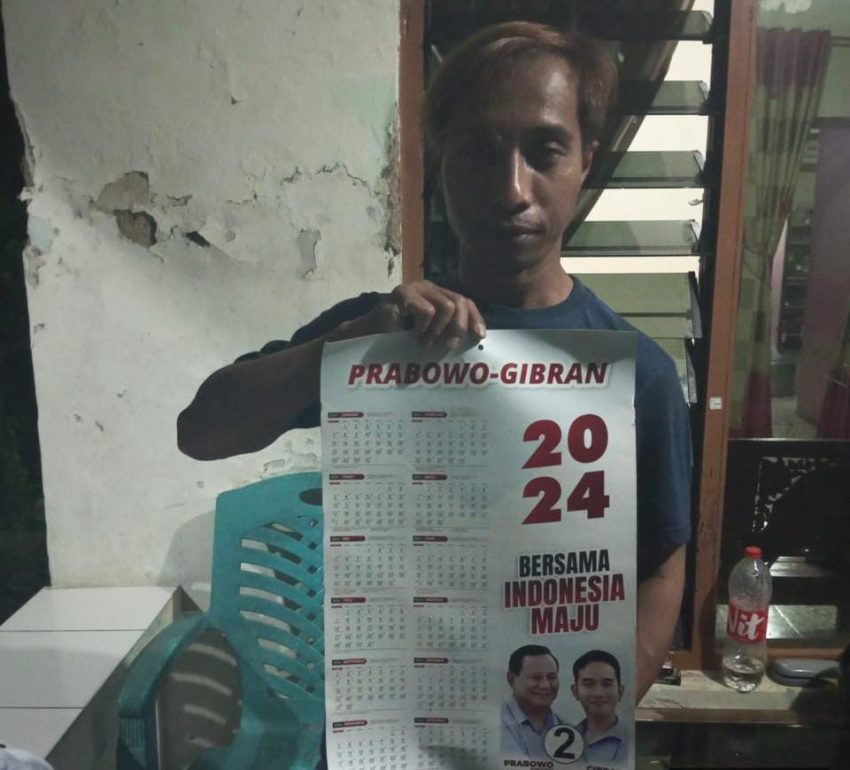 Hari ini, mereka kembali melakukan kampanye blusukan dan mendatangi rumah warga di Kota Kudus. Selain itu, mereka juga membagikan kaos dan kalender bergambar Prabowo-Gibran, Jumat (2/2/2024).