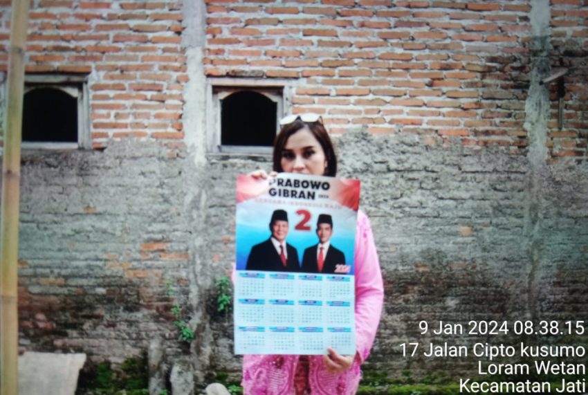 Hari ini, mereka kembali melakukan kampanye blusukan dan mendatangi rumah warga di Kota Kudus. Selain itu, mereka juga membagikan kalender dan kaos bergambar Prabowo-Gibran, Selasa (9/1/2024).