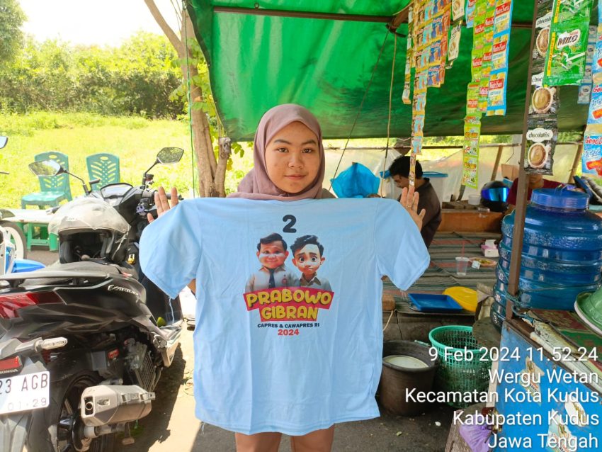 KUDUS – Sejumlah pedagang di Kabupaten Kudus menyatakan dukungannya kepada pasangan Prabowo-Gibran, untuk menang satu putaran di Pilpres 2024.