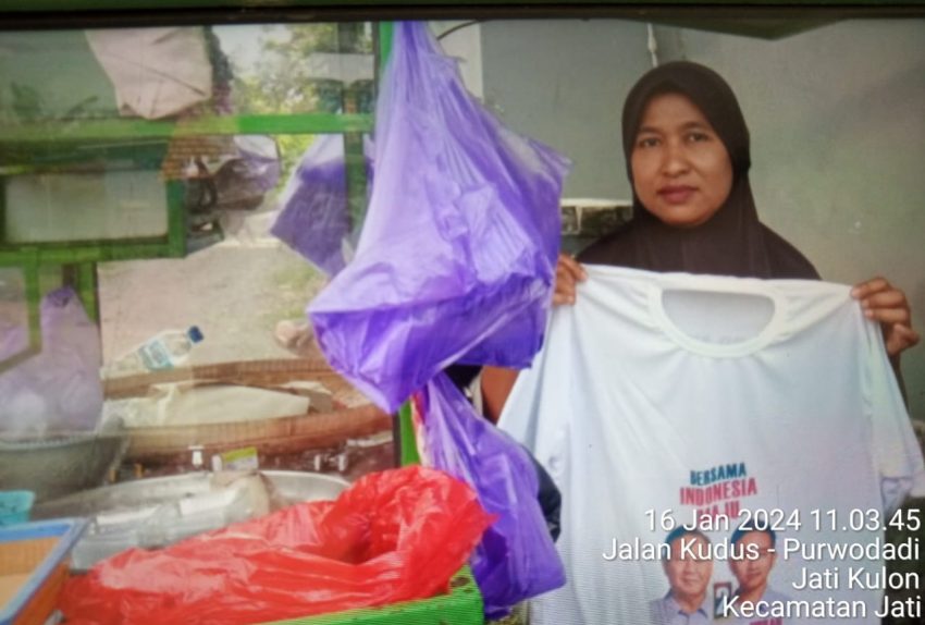KUDUS – Sejumlah pedagang di Kabupaten Kudus menyatakan dukungannya kepada pasangan Prabowo-Gibran, untuk menang satu putaran di Pilpres 2024.