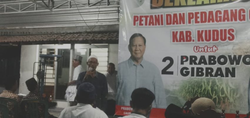 KUDUS – Ratusan petani dan pedagang cabai di Kabupaten Kudus, Jawa Tengah menggelar deklarasi mendukung pasangan pasangan Prabowo Subianto-Gibran Rakabuming Raka pada Pemilu 2024.