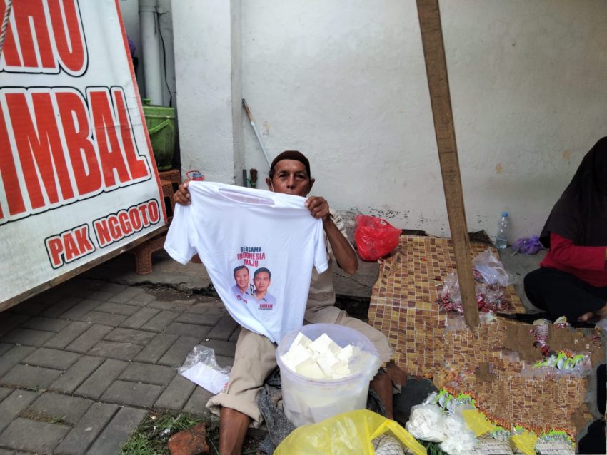Khanafi mengklaim, pemasangan stiker dan bagi-bagi kaos merupakan keinginan pedagang yang mendukung Prabowo- Gibran pada Pemilihan Presiden dan Wakil Presiden tahun 2024 mendatang.
