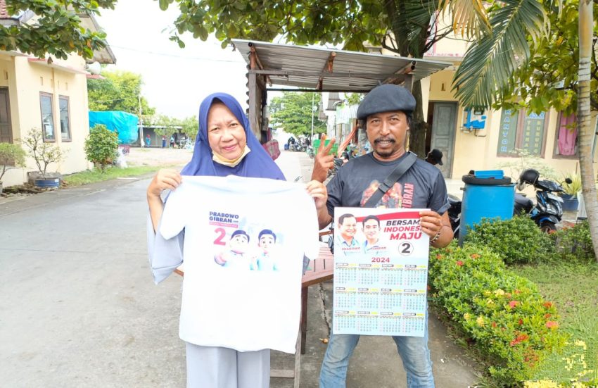 Para relawan juga membagi-bagikan kaos, kalender, dan stiker kepada para pengunjung Pasar Babe. Para relawan juga kerap menyambangi masyarakat secara door to door untuk menyosialisasikan figur dan program unggulan pasangan Prabowo-Gibran.